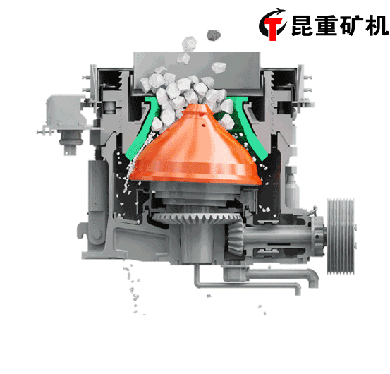 1、提高生產與功效效率,采用主軸固定,偏心套繞主軸旋轉的結構,可承受更大的破碎功率。合理的偏心距、腔型和運動參數配合,大大提高了生產能力和工作效率。